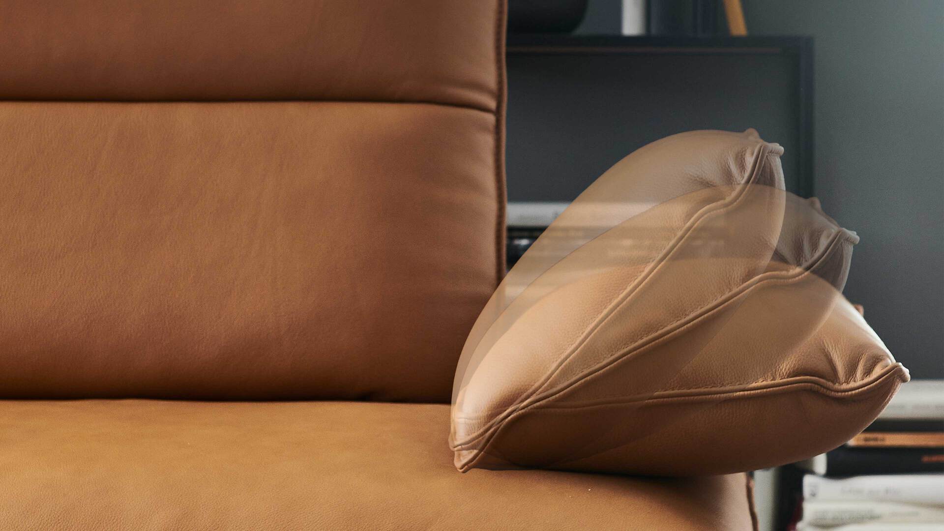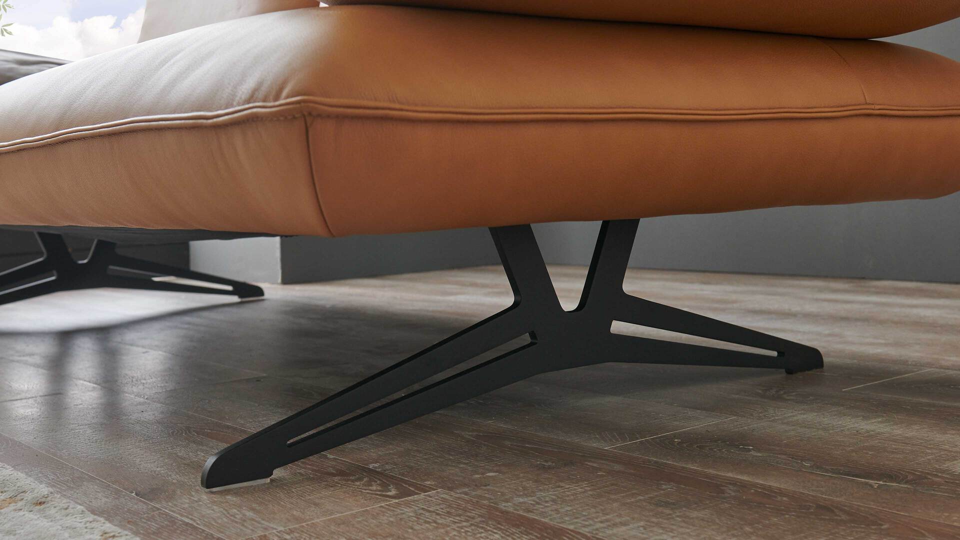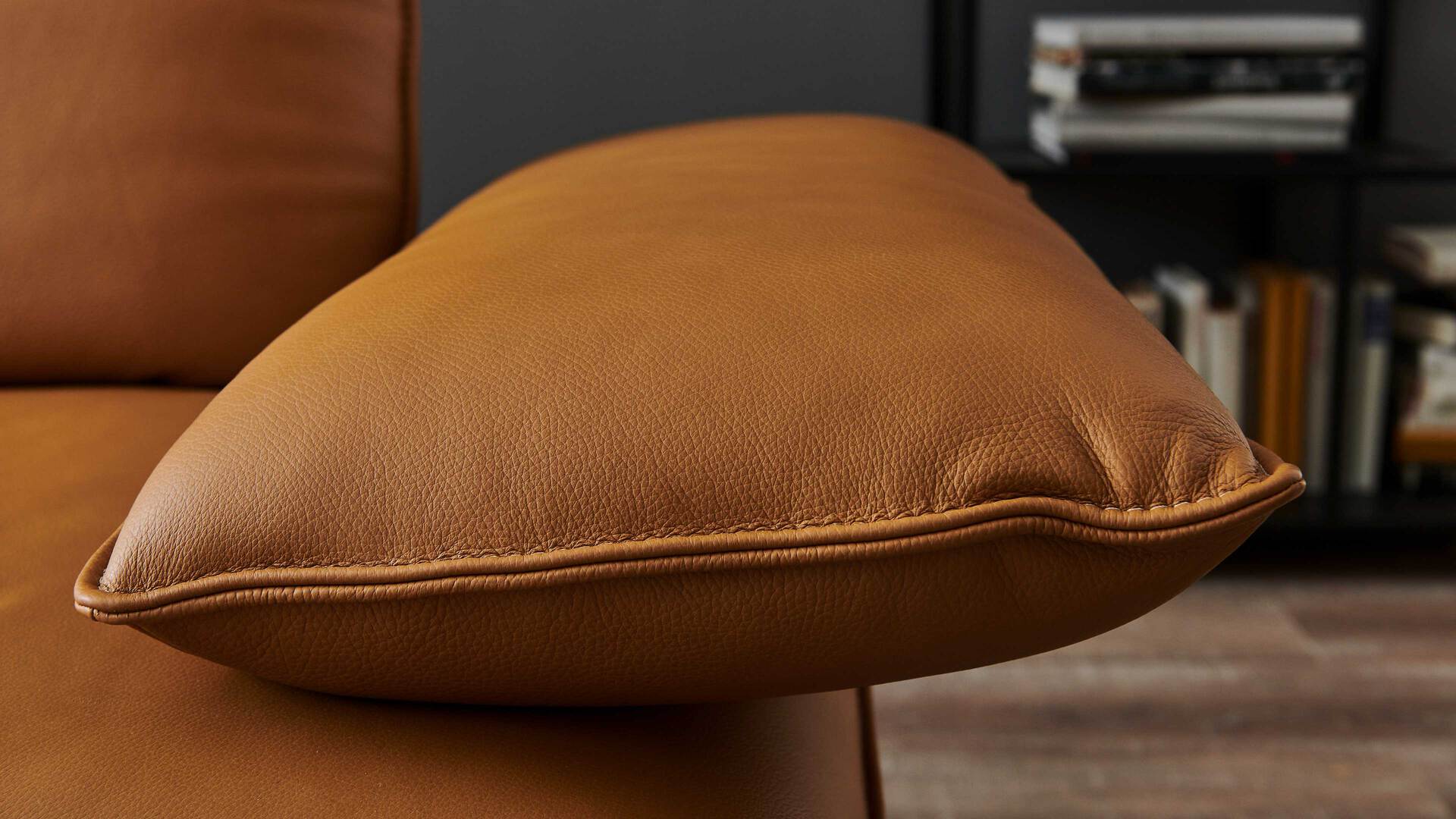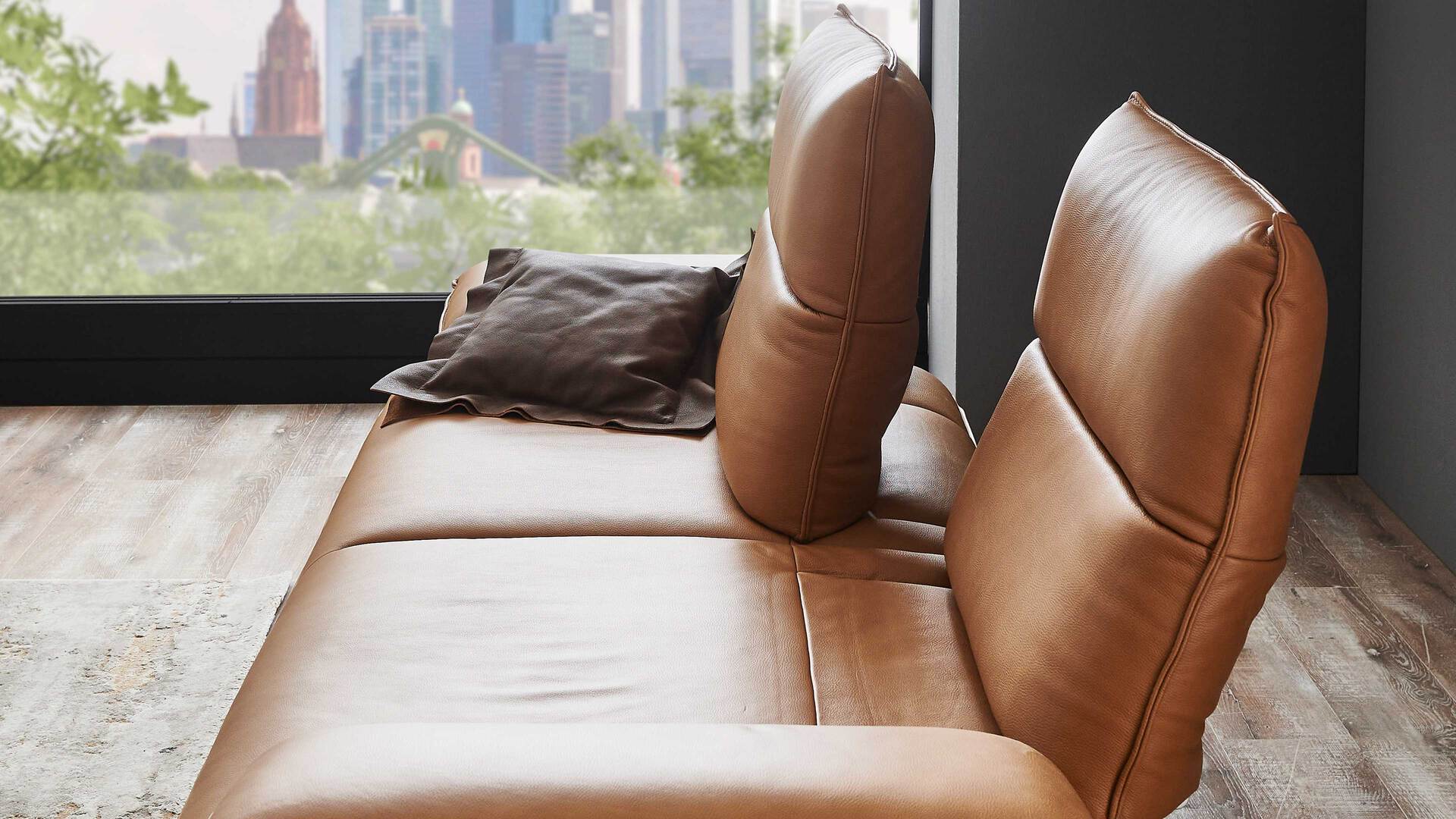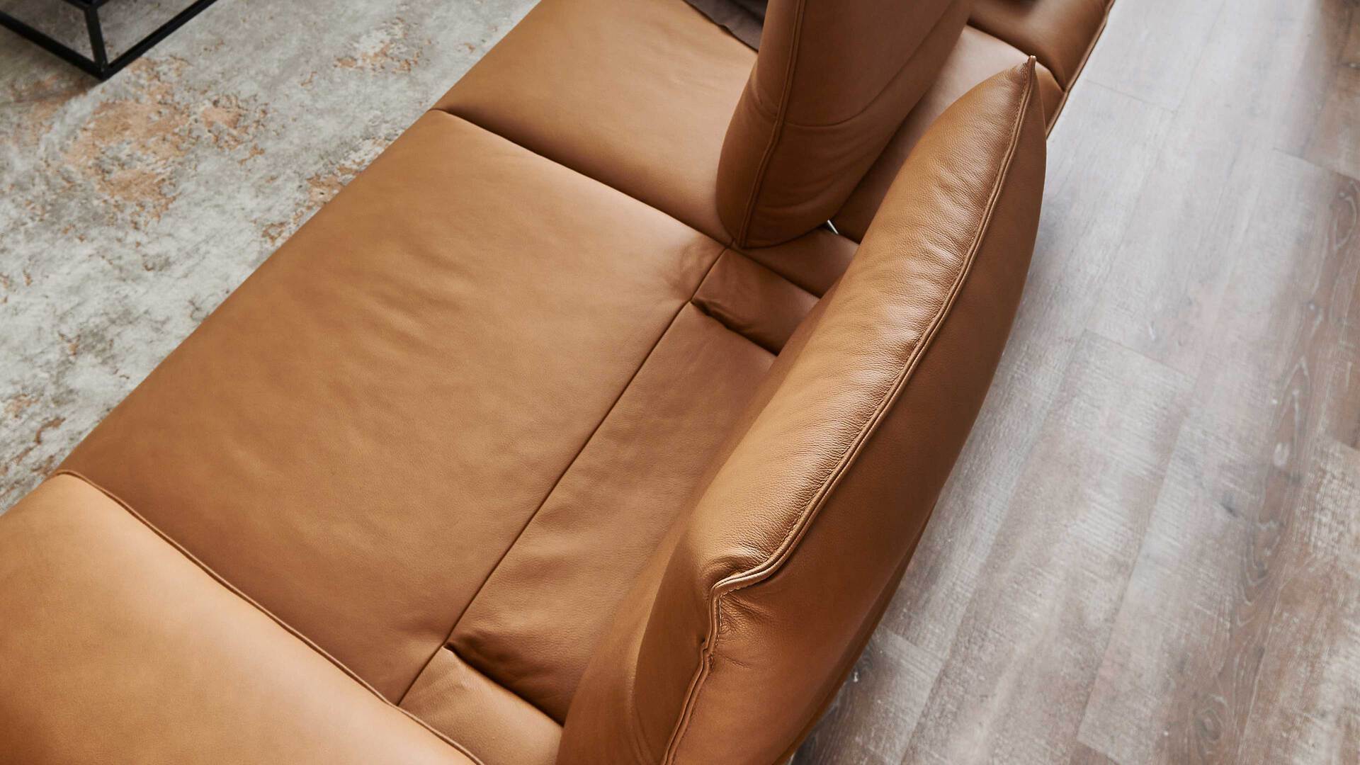 Dieser stilvolle 2,5 - Sitzer in edlem Leder Bonita Ocra vereint modernes Design mit ausgeklügelter Funktionalität und hohem Sitzkomfort.