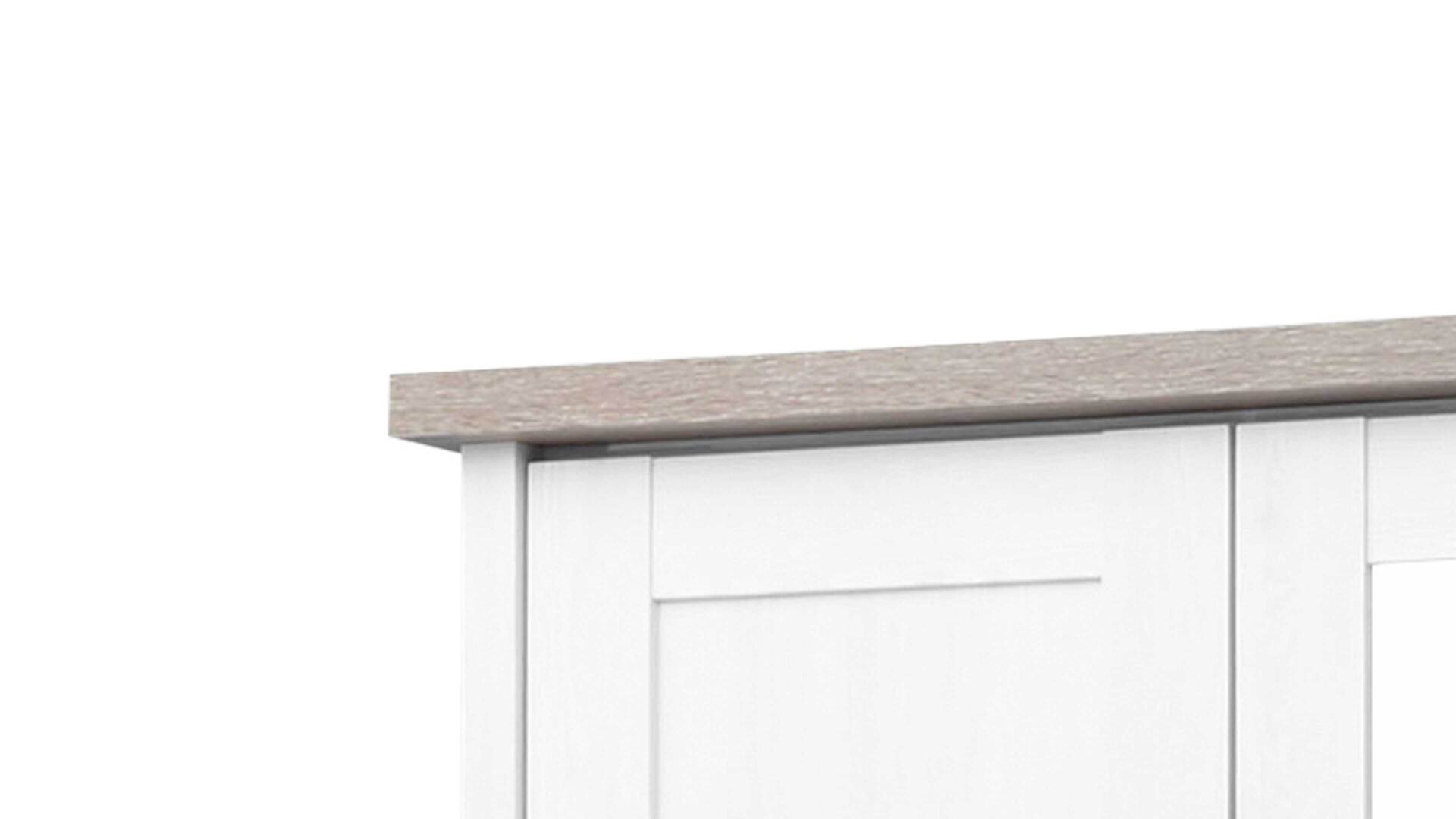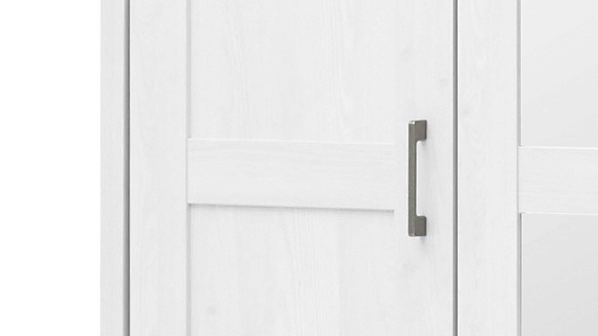 Dieser ansprechende Kleiderschrank wertet Ihr Schlafzimmer optisch wie funktional auf. Er begeistert mit seinem klassisch-eleganten Design, das Landhaus-Flair gepaart mit antikem Charme mit sich bringt. Zu weiten Teilen präsentiert sich der Drehtürenschrank in weißer Pinien-Nachbildung. Akzentuierend wirken die trüffelfarbenen Details und die dunklen Griffe. Sie verleihen dem prinzipiell hell gestalteten Schlafzimmerschrank eine attraktive Tiefgründigkeit. Neben den visuellen Vorzügen bieten die erstklassig verarbeiteten Kunststoffoberflächen auch einen funktionalen Vorteil: Sie sind angenehm pflegeleicht.