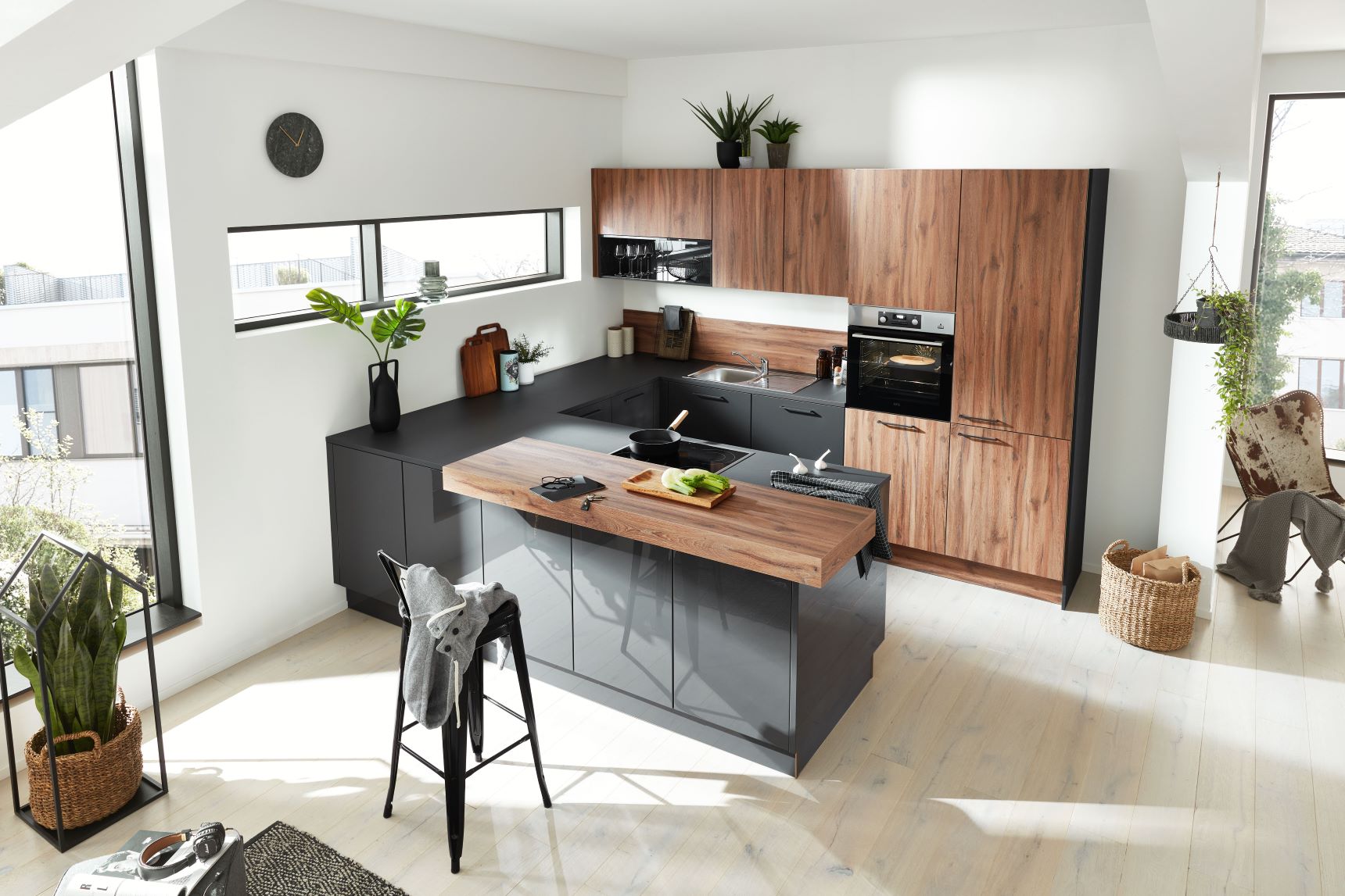 Die Schönheit der Designküche Interliving Nova Lack! Mit ihrem atemberaubenden Design in Grau und Naturholz, kombiniert mit einer eleganten Arbeitsplatte in mattem Anthrazit, ist diese Küche ein echter Hingucker. Aber es geht nicht nur um das Aussehen - die Interliving Nova Lack Küche bietet auch eine hohe Funktionalität und Langlebigkeit. Optimieren Sie Ihre Küche und verbessern Sie Ihre Koch- und Esserlebnisse mit der Interliving Nova Lack Küche.
