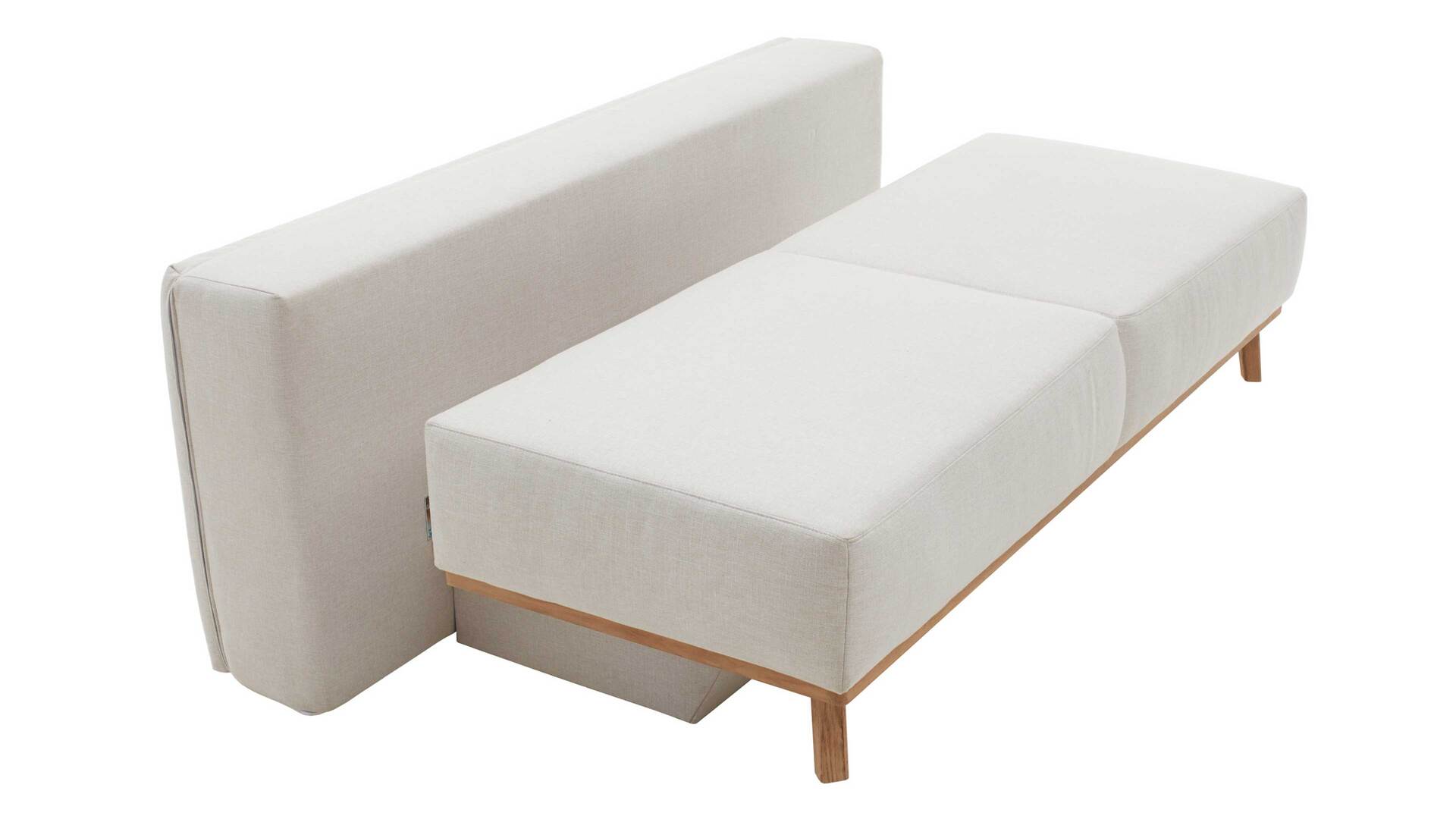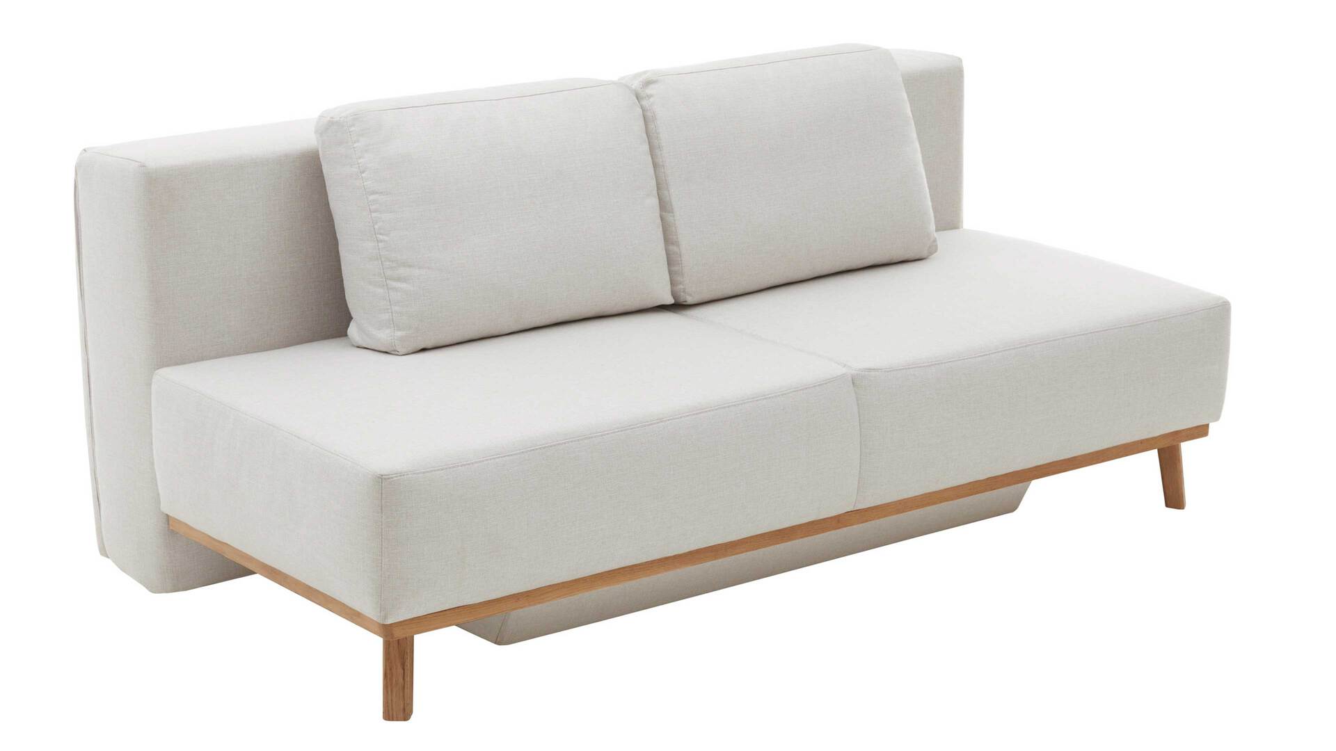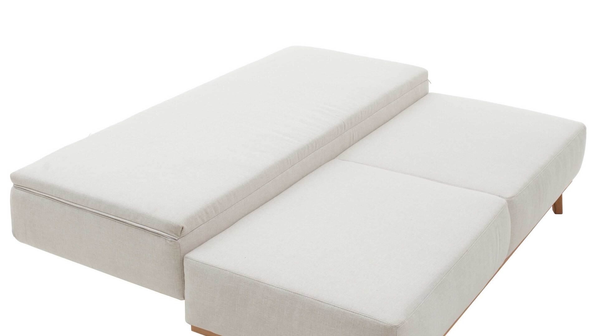 Das Sofa kommt in einem dezenten Naturton und passt somit zu einer Vielzahl an Nuancen des Interieurs. Sein naturfarbener Stoffbezug ist besonders weich im Griff. Die zugehörigen losen Arm- und Rückenkissen sind im gleichen Farbton gehalten und mit einer soften Flockenfüllung ausgestattet. Für noch mehr sanften Komfort sorgt der darunterliegende Federkern mit Polyschaum und Wattevlies auf Wellenfedern in Sitz und Rücken. Der Rückenteil ist mit einer Polyschaum-Wendematratze versehen - gegen Mehrpreis auch mit Kaltschaummatratze. Hinzu kommt ein praktischer Reißverschluss in Sitz und Rücken.