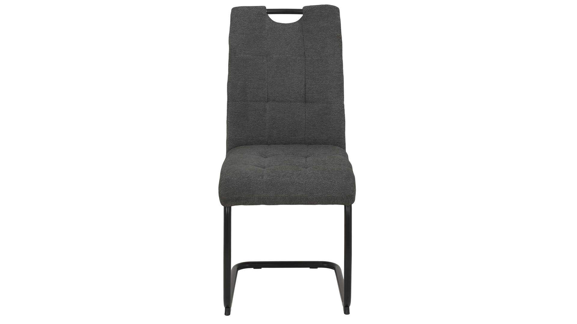 Der Schwingstuhl Karla S zeichnet sich durch sein edles Design, den hohen Komfort und die exzellente Verarbeitungsqualität aus. Er kombiniert anthrazitfarbenen Webstoff in Teddy-Optik mit einem schlichten schwarzen Rundrohr-Metallgestell. Die Materialien und Farben verleihen dem Freischwinger eine moderne und elegante Ausstrahlung.