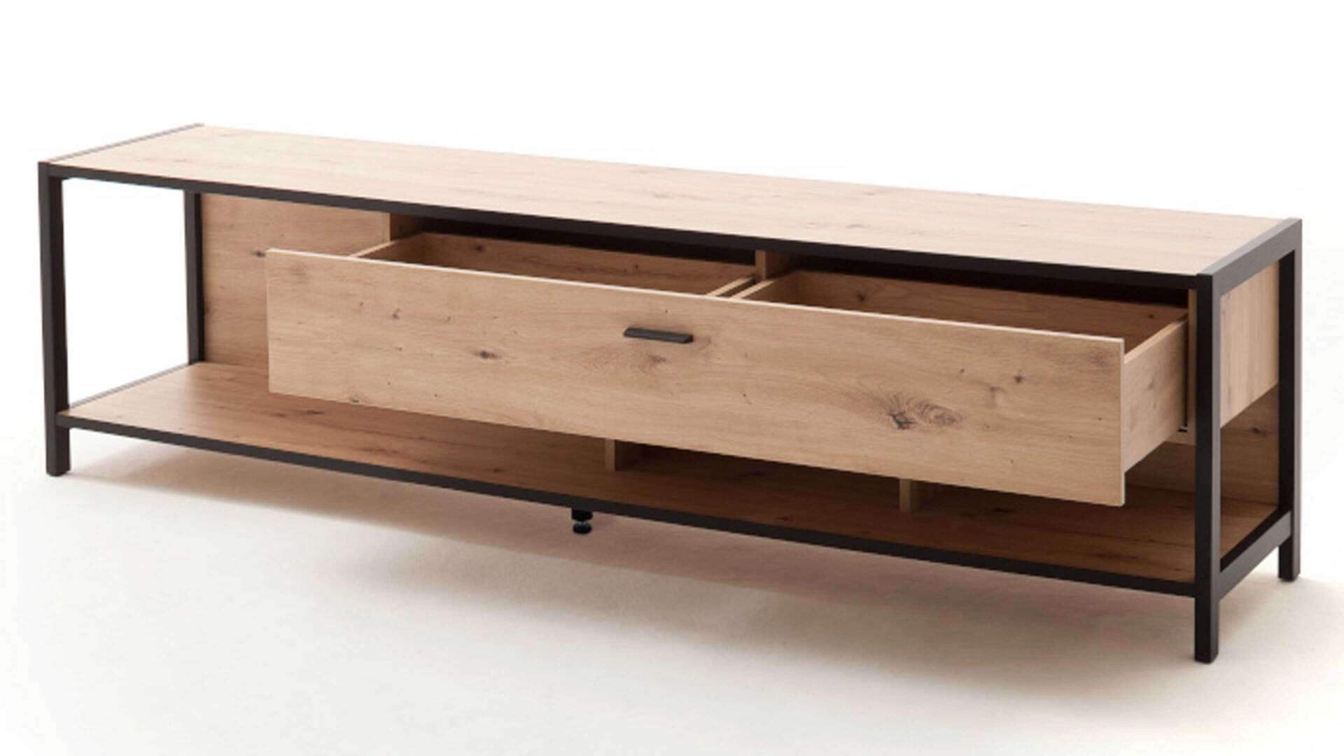 Die Wohnwand Algarve ergänzt Ihren Wohn- und Loungebereich mühelos um viel dekorativen Stauraum und umso mehr stimmungsvolles Flair. Harmonisch greifen die lackierten Metallgriffe den anthrazitfarbenen Dekor-Korpusrahmen auf. Das Design in Balkeneiche und Anthrazit bringt einen modernen Industrial Vibe in die eigenen vier Wände. Gleichzeitig passt die Gestaltung zu zahlreichen Einrichtungsstilen.