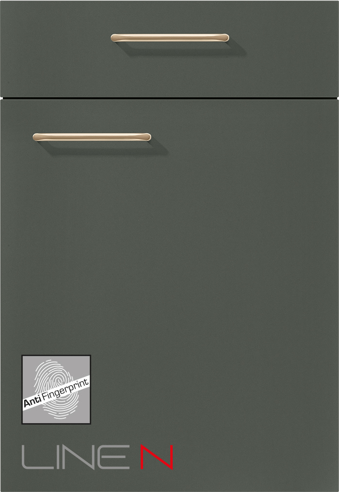 Sanftes Grün, Smart und schön! Die U-förmig angeordnete Planung hat viel mehr zu bieten als ein elegantes Design. Sie überrascht mit intelligenten Details wie einer besonders praktischen Durchgangstür in Schrankoptik in Richtung des angeschlossenen Hauswirtschaftsraums.